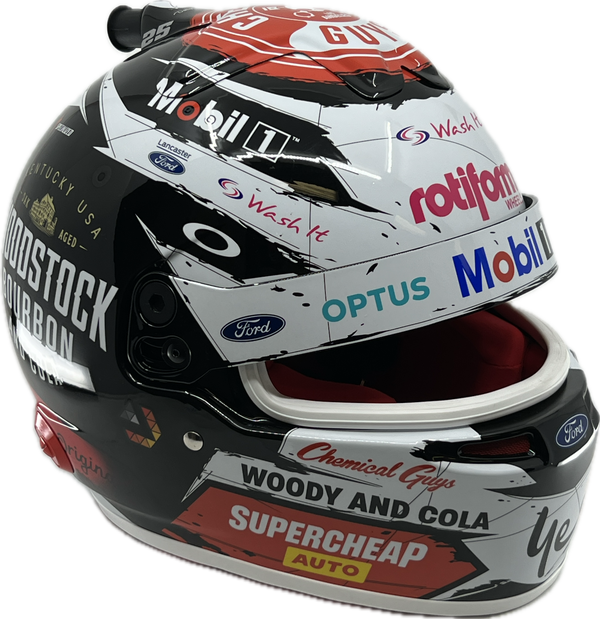A full-size replica of Chaz Mostert’s 2023 Woodstock Bourbon helmet. Optional Extra Clear Display Case and Official Woodstock Bourbon Plaque. Limited Units Available.