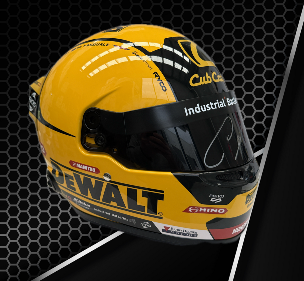 STRICKLY LIMITED EDITION full-size replica DeWalt Team 18 2025 Helmet. This is more than just a collectible; it's a piece of racing history brought to life.