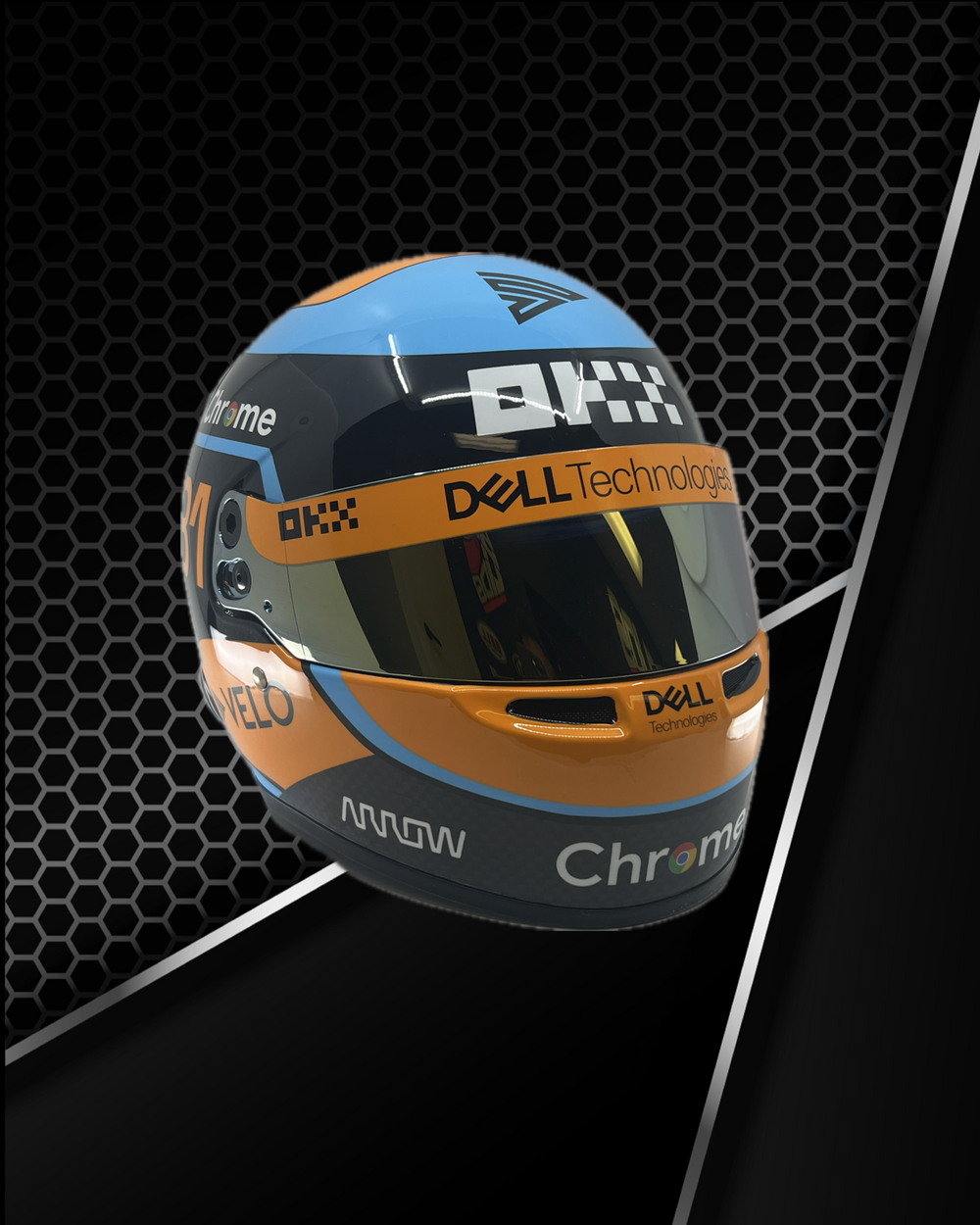 2023 McLaren Team Replica helmets. Inspired by the 2023 F1 car driven by Lando Norris and Oscar Piastri.